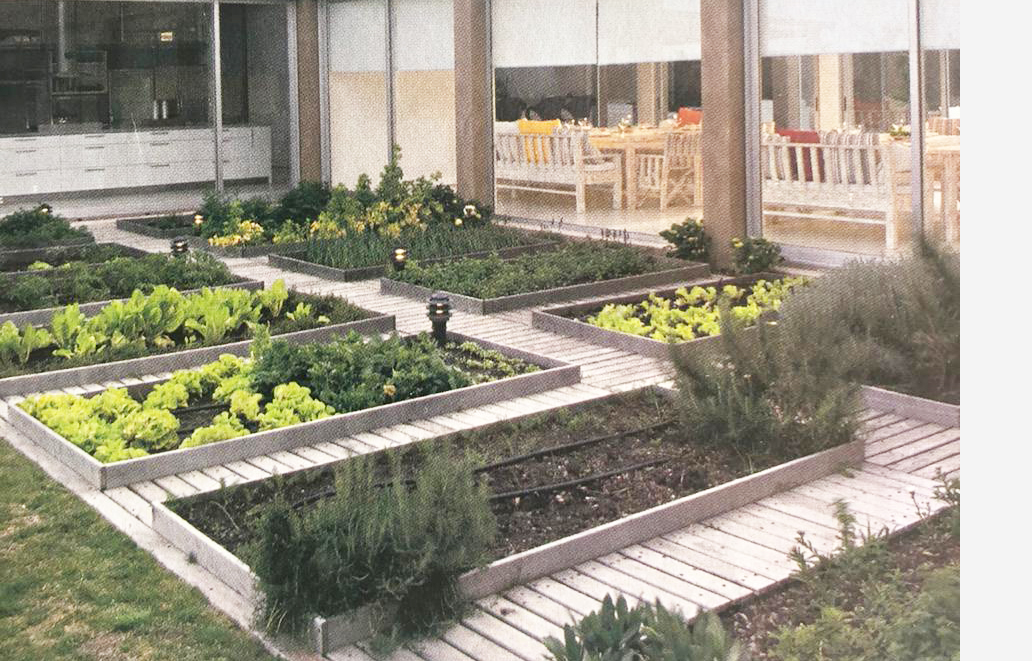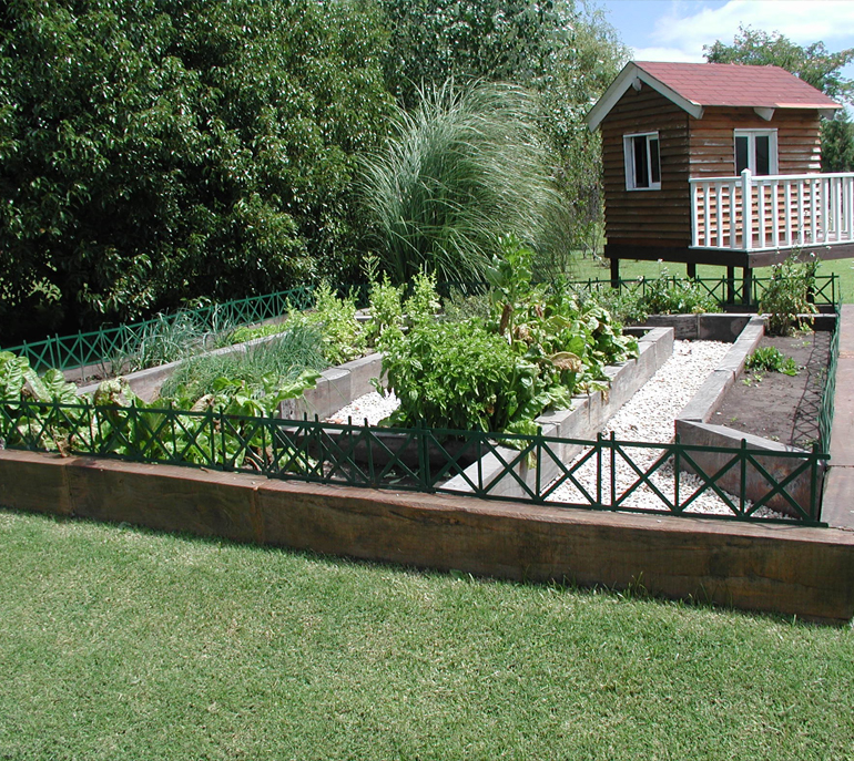 Huerta diseñada con quebracho y herrería, incluye caminos interiores de piedras para tener acceso a todos los sectores
