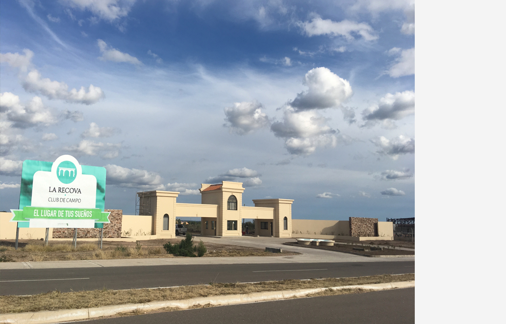 Vista aerea de las obras. Se puede apreciar la construcción del Portico de acceso como asi también la apertura de calles internas del barrio que corresponden a la primer etapa de 57 lotes. La Recova Club de Campo cuenta con una ubicación estratégica, con solo cruzar a la otra vereda de la Av Univesitaria esta ubicado frente a la Universidad, el Polo Tecnológico, y el Centro de alto rendimiento deportivo capacitado para entrenamiento de atletas olímpicos. Cuenta con una magnifica vista de las sierras de San Luis